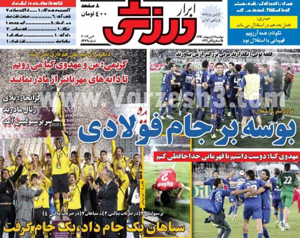 روزنامه ابرار ورزشی 16 ارديبهشت 1392