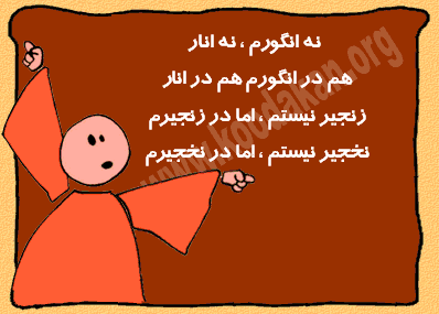 من یار مهربانم داناو خوش بیانم گویم سخن فراوان با آنکه بی زبانم هر مشکلی که داری ، مشکل گشای آنم پندت دهم قراوان من یار پند دانم من دوستی هنرمند، با سود و بی زیانم از من مباش غافل ، من یار مهربانم