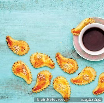 حال خمیر را روی میز به قطر نیم سانت باز کرده و با قالب بتهجقه قالب زده و در سینی فر کاغذ انداخته شده چیده و روی شیرینی ها را با قلممو از تخم مرغ کامل مخلوط شده رومالی بمالید و کمی هم کنجد بپاشید. حال سینی را در فر 180 درجه برای 10تا20 دقیقه قرار دهید تا طلایی شوند.