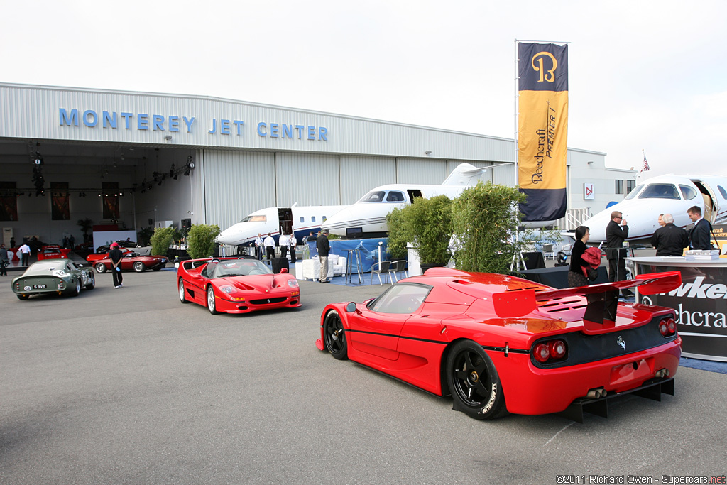 در این ماشین از آیرودینامیک ماشینهای فرمول 1 الهام گرفته شده. بر عکس فراری F50 که از باله ی بزرگ عقب برای ایجاد نیروی رو به پایین استفاده شده این ماشین از طرحهای رو و زیر بدنه برای افزایش نیروی رو به پایین استفاده میکند طوری که این نیرو در این ماشین در سرعت 300 کیلومتر در ساعت حتی بیشتر از f50 با ان باله ی بزرگ عقبش و وزن کلی ماشین رو در این سرعت به بیش از 2 تن می رسد! دماغه ی جلوی این ماشین جریان هوای جلوی ماشین رو به دو قسمت تقسیم میکنه و هوا رو به سمت دو هواکش بزرگ پشت درها منتقل میکند. زیر ماشین هم از مجراهایی تشکیل شده که دارای باله هایی شبیه باله ی کوسه هستند تا سرعت هوای عبوری از زیر ماشین رو به حداکثر سرعت خودشون برسونن تا هوای اطراف ماشین در سرعتهای بالا اون رو به زمین مثل کنه بچسباند. در ضمن زیر این ماشین کاملا صاف و کاملا پوشیده شده است تا اختلالی در جریان هوا ایجاد نشود.