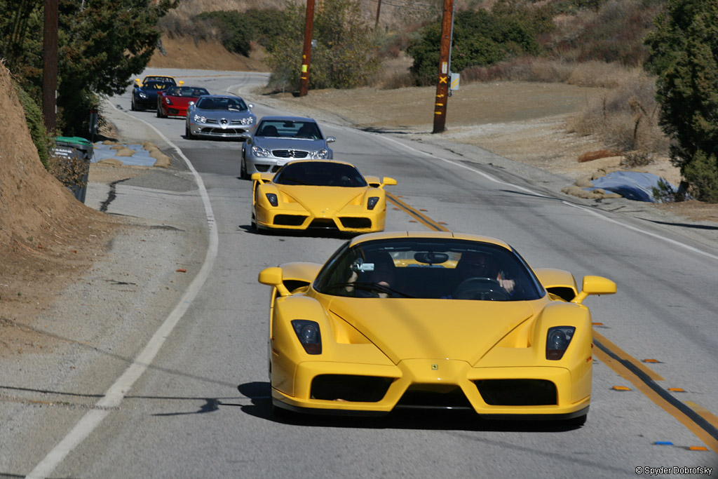 هر دو خودرو در حال سکون قرار گرفتند، ۱.۳ میلیون دلار ارزش و ۲۴ سیلندر و ۹۶ سوپاپ در حال کار کردن بودند. تکنیسین ها علامت دادند و ما به سرعت آنتن دستگاه GPS مغناطیسی را به سقف با چسب وصل کردیم ( بدنه انزو از جنس فیبر کربن است). من با راننده در مورد تست صحبت کردم و قرار شد یک دور کامل نیز با سرعت بزند تا در پیچهای مختلف، نیروی جانبی g را اندازه گیری کنیم. او سپس در را بست و ۵ دقیقه بعد بازگشت.شتاب ثبت شده برای صفر تا صد ۳.۳ ثانیه بودند.