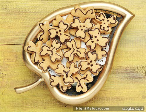 حال تخم مرغ ها را اضافه نمایید. سپس آردبرنج را افزوده و آرد نخودچی را اضافه نمایید تا مایه خمیر شود. حال کم کم گلاب و یا شیر را ریخته تا خمیر نرمی بدست آید.خمیر را دو قسمت کرده و یک قسمت ساده و یک قسمت را پودر کاکائو اضافه نمایید تا خمیر شکلاتی شود.