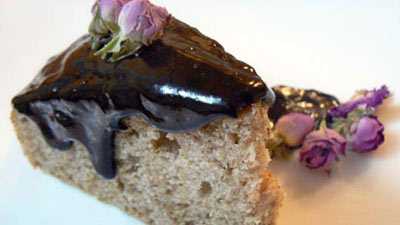 با توجه به اینکاه این کیک کمی خشک است با یک گاناش شکلاتی ( سس شکلاتی ) سرو شود، بدین منظور مقدار 50 گرم شکلات تخته ایی و 50 گرم خامه را به روش بن ماری روی بخار کتری حل و آماده کنید و سطح کیک را با آن بپوشانید.